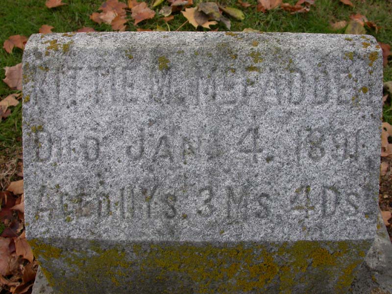 Kittie M. McFadden Interment #2395 in lot 465-4 on 5 Jan 1891 |