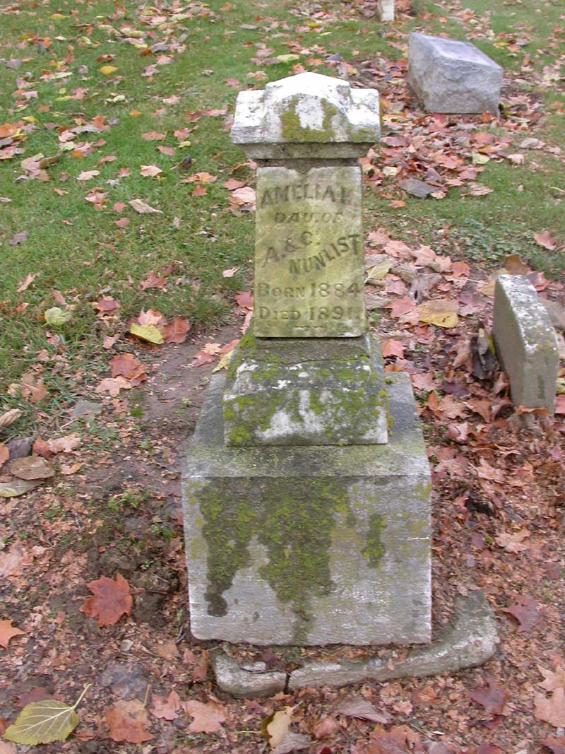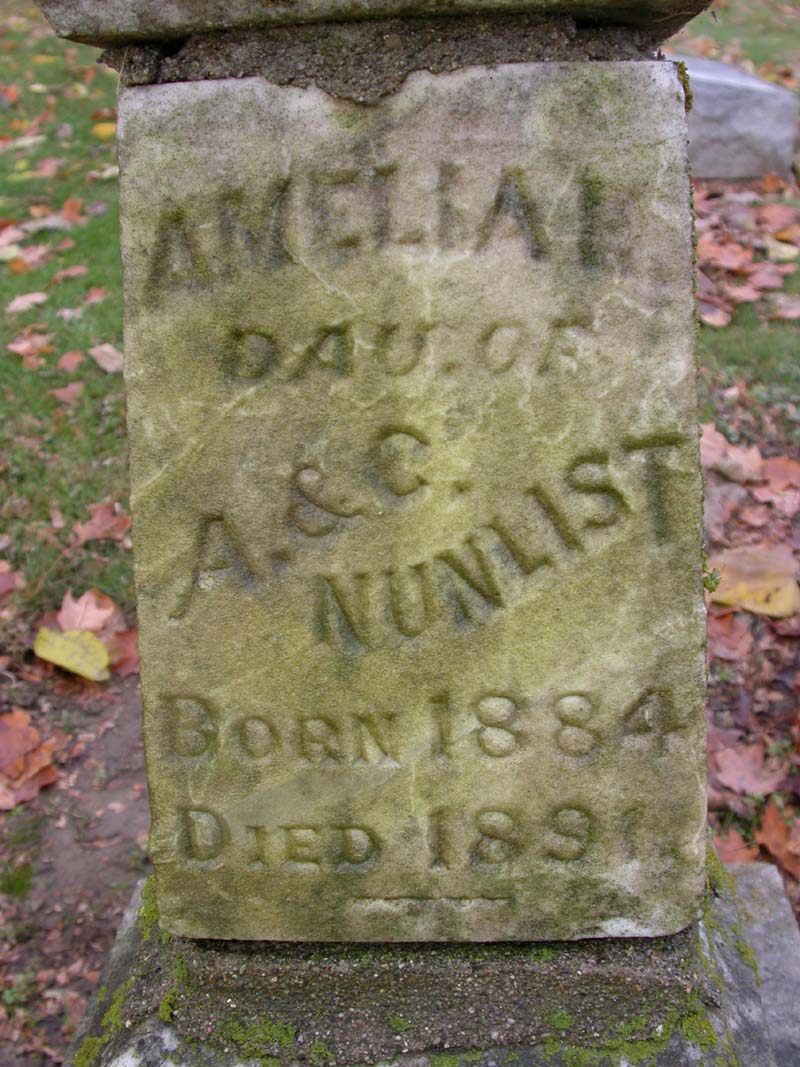 Amelia E. Nunlist Interment #2416 in lot 465-7 on 3 Apr 1891 |