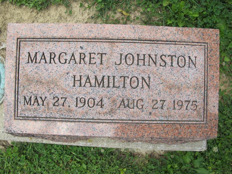 Margaret Johnston Hamilton Interment #8903 of Margaret L. Johnston Hamilton in lot 29-4 on 2 Sep 1975 |
