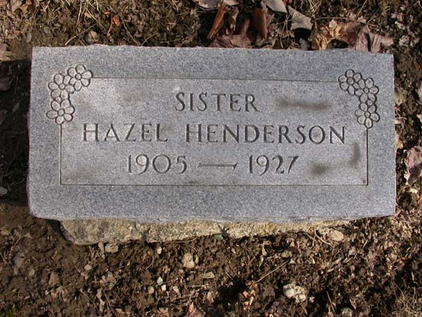 Sister Interment #5046 of Hazel Belle Henderson in lot 28-10 on 4 Aug 1927 |