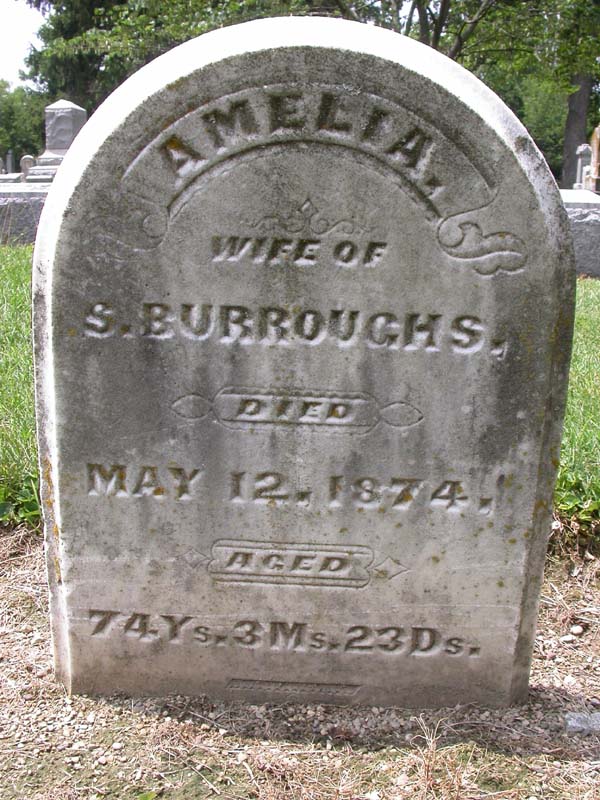 Amelia Burroughs Interment #1226 in lot 481 on 15 May 1874 |