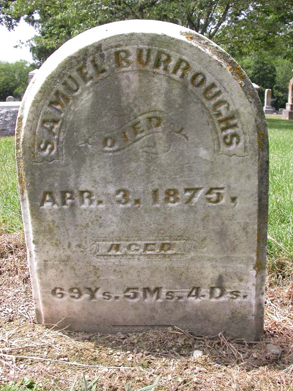 Samuel Burroughs Interment #1288 in lot 481 ca. Apr. 1875 |