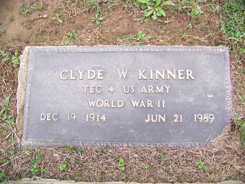 Clyde W. Kinner TEC 4 US Army World War II Dec 19 1914 - Jun 21 1989 |