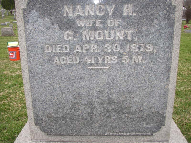 Nancy H. Mount [Warren County Cemetery Records Volume 1 has husband as G. Mount] |