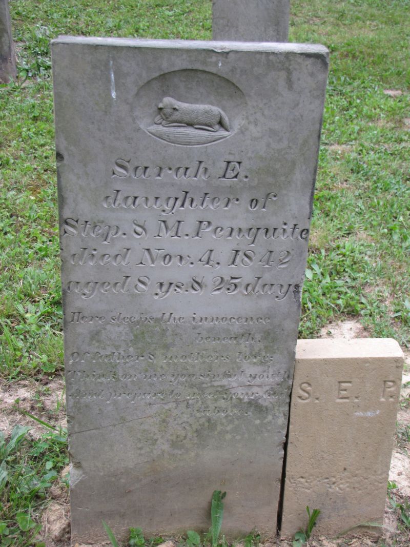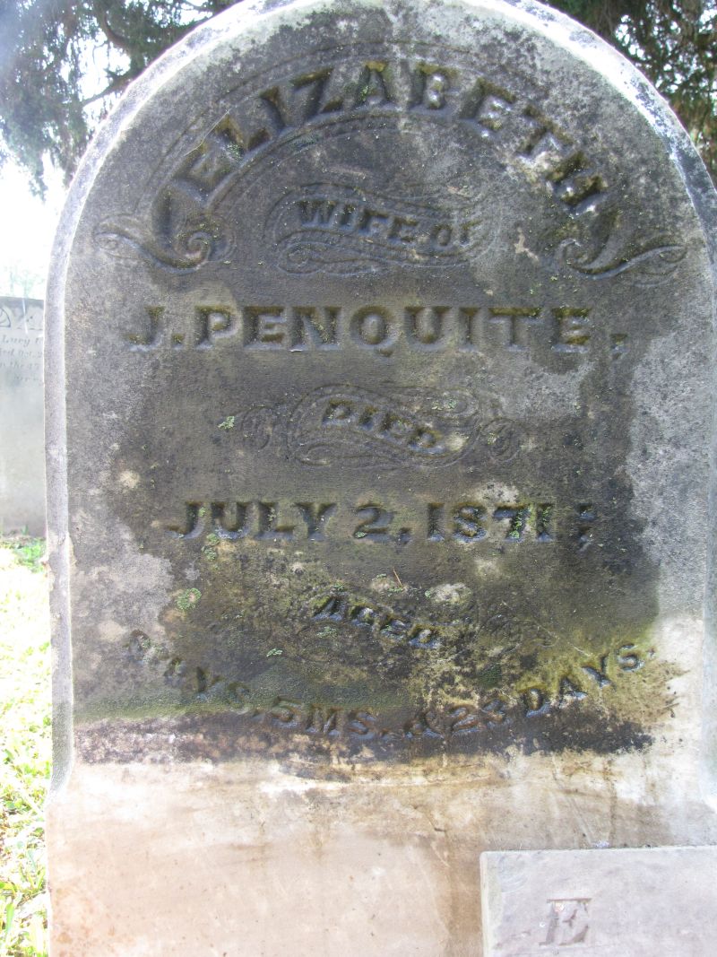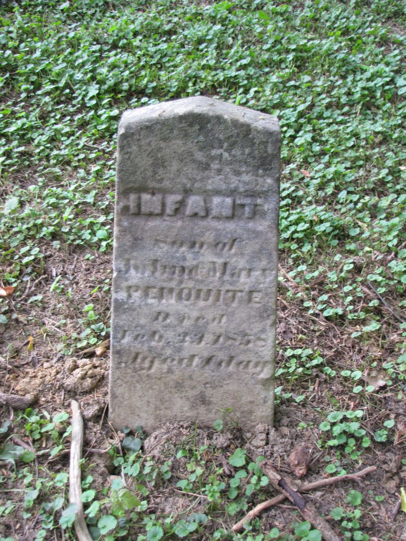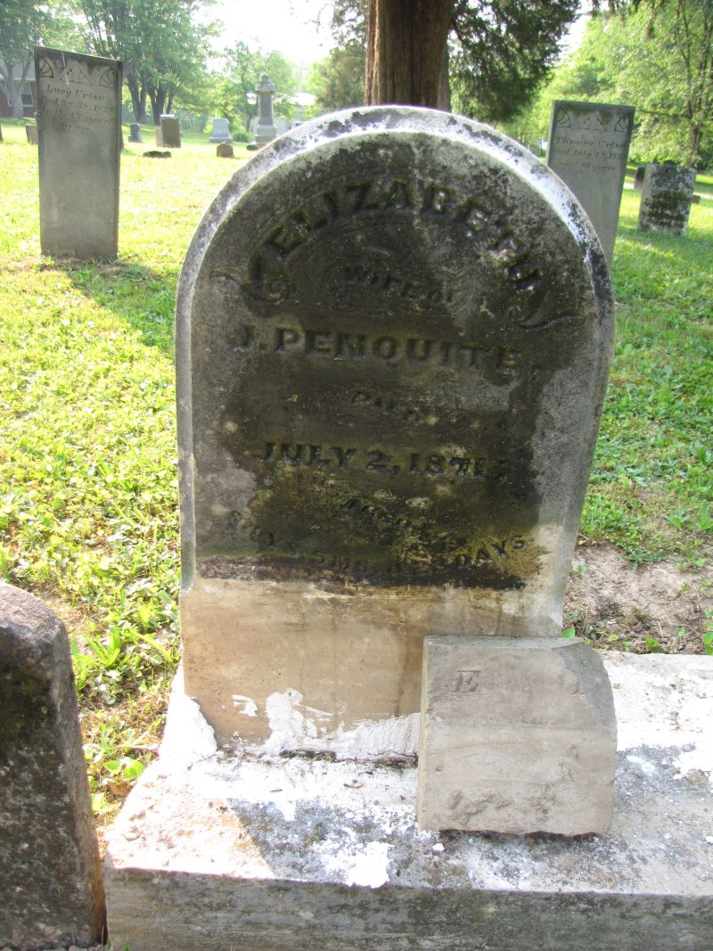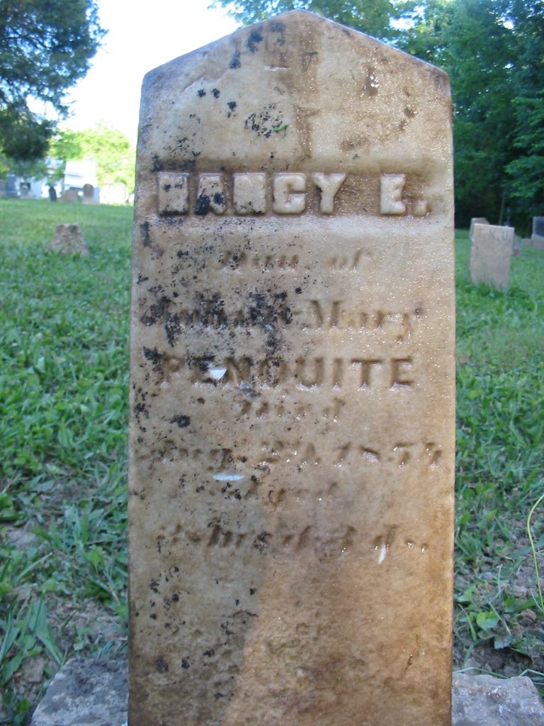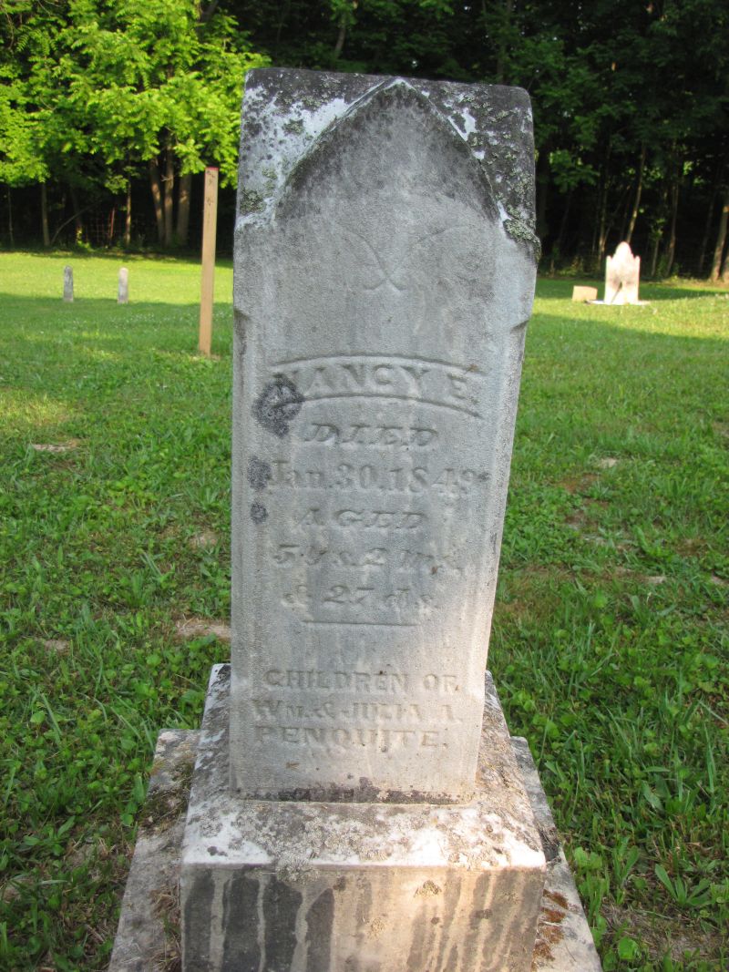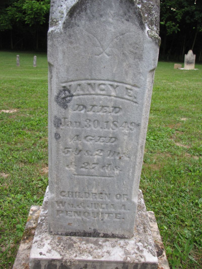 Nancy E. Penquite dau. of John & Mary Penquite died Aug. 29, 1854 aged 8 months & 4 days |