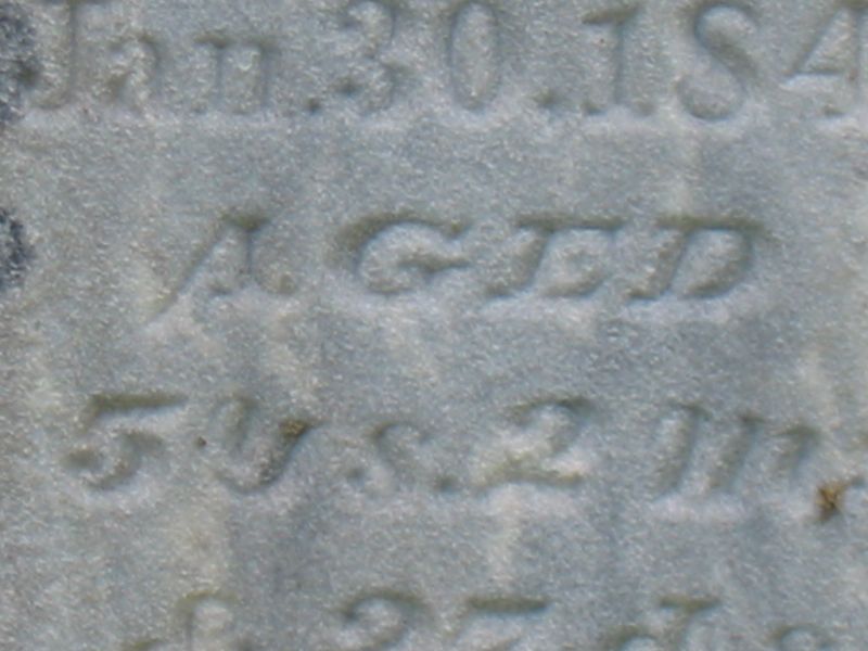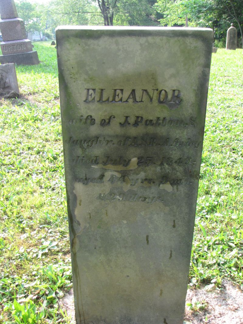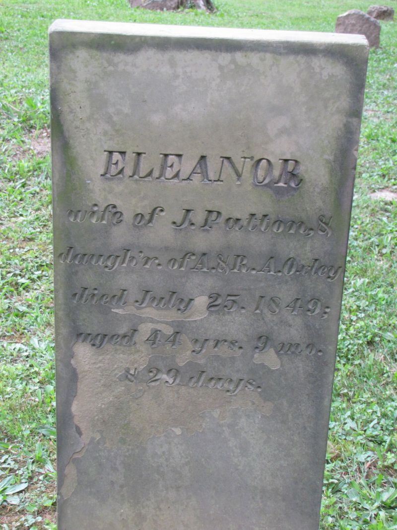 Eleanor Patton wife of J. Patton, & daughter of A. & R. A. Oxley died July 25, 1849; aged 44 years 9 months & 29 days |