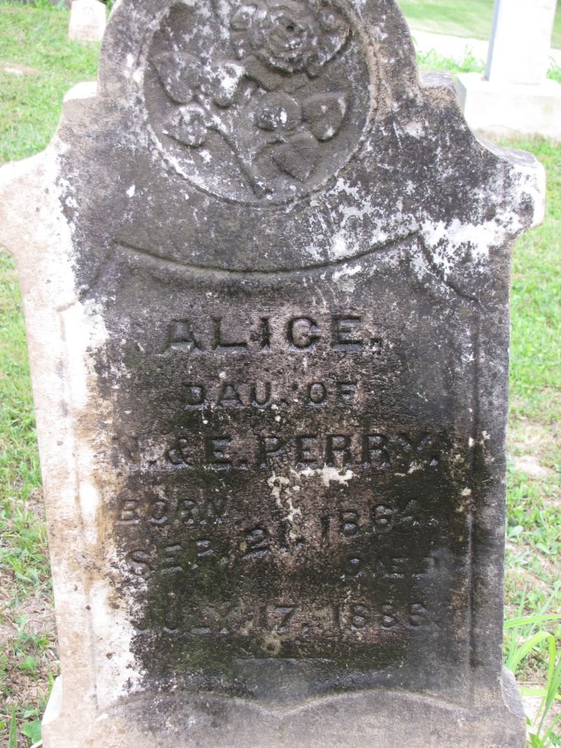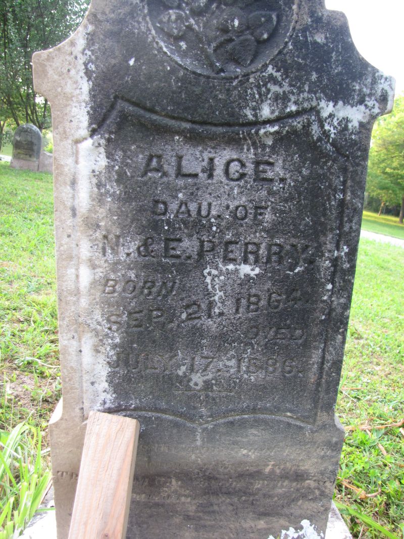 Alice Perry dau. of N. & E. Perry born Sep. 21, 1864 died July 17, 1886 |