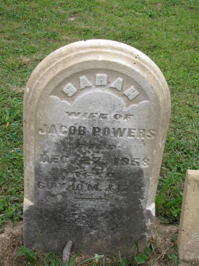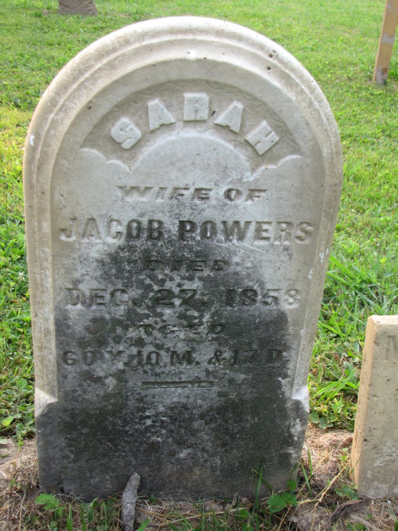 Sarah Powers wife of Jacob Powers died Dec. 27, 1858 aged 50 years 10 months & 17 days |