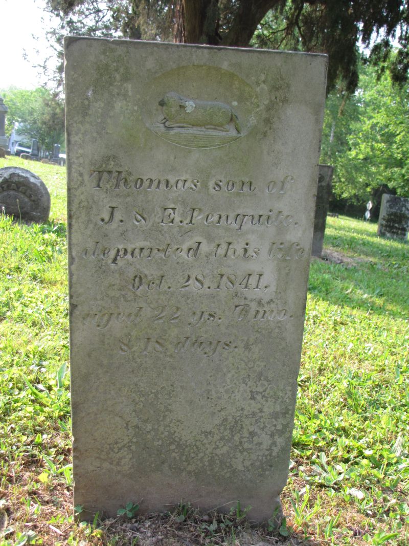 Thomas Penquite son of J. & E. Penquite departed this life Oct. 28, 1841 aged 22 years 7 months & 18 days |