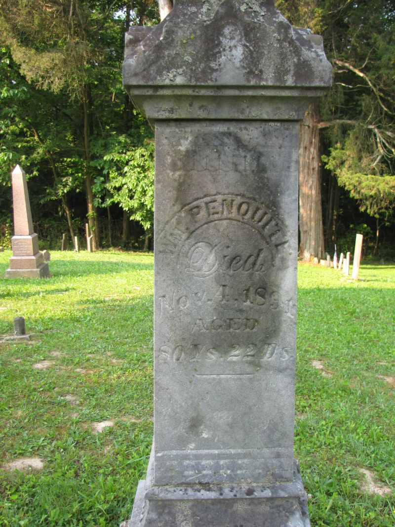 Penquite [partially buried inscription - age from Warren County Cemetery Records Volume 7 ]- see probably footstone |
