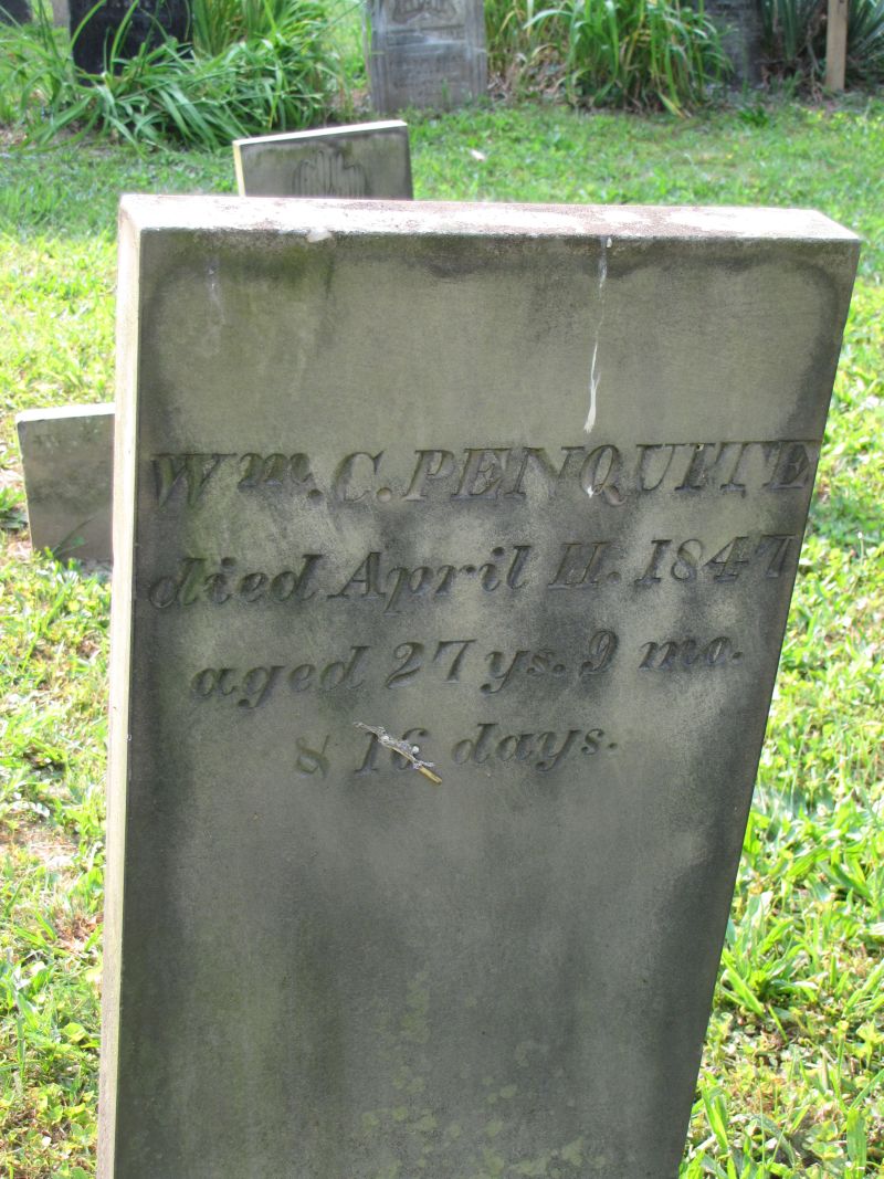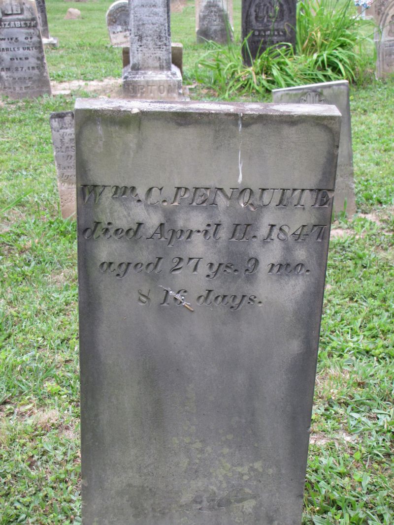 Wm. C. Penquite died April 11, 1847 aged 27 years 9 months & 16 days |
