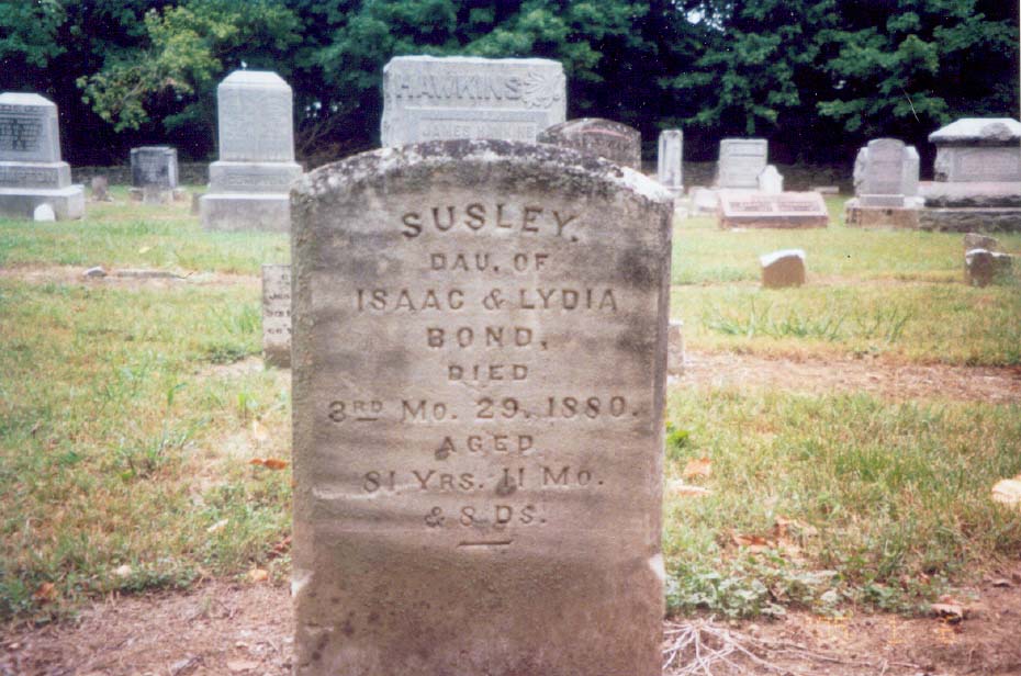 Susley Bond dau. of Isaac & Lydia Bond died 3rd Mo. 29, 1880 aged 81 years 11 months & 8 days |