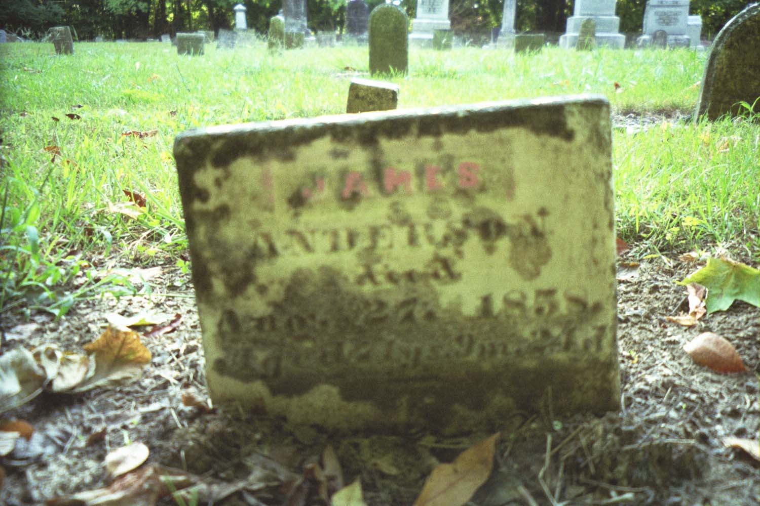 James Anderson died Aug. 27, 1858 aged 71 years 9 months 24 days Linda Bunnell writes: "The 1850 census lists James as 80 yrs. Old husband of Deborah born ca 1783" |