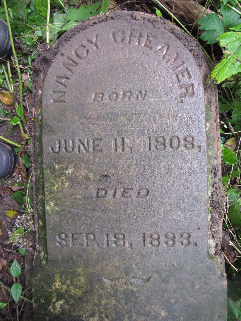 Nancy Creamer born June 11, 1808 died Sep. 18, 1883 |