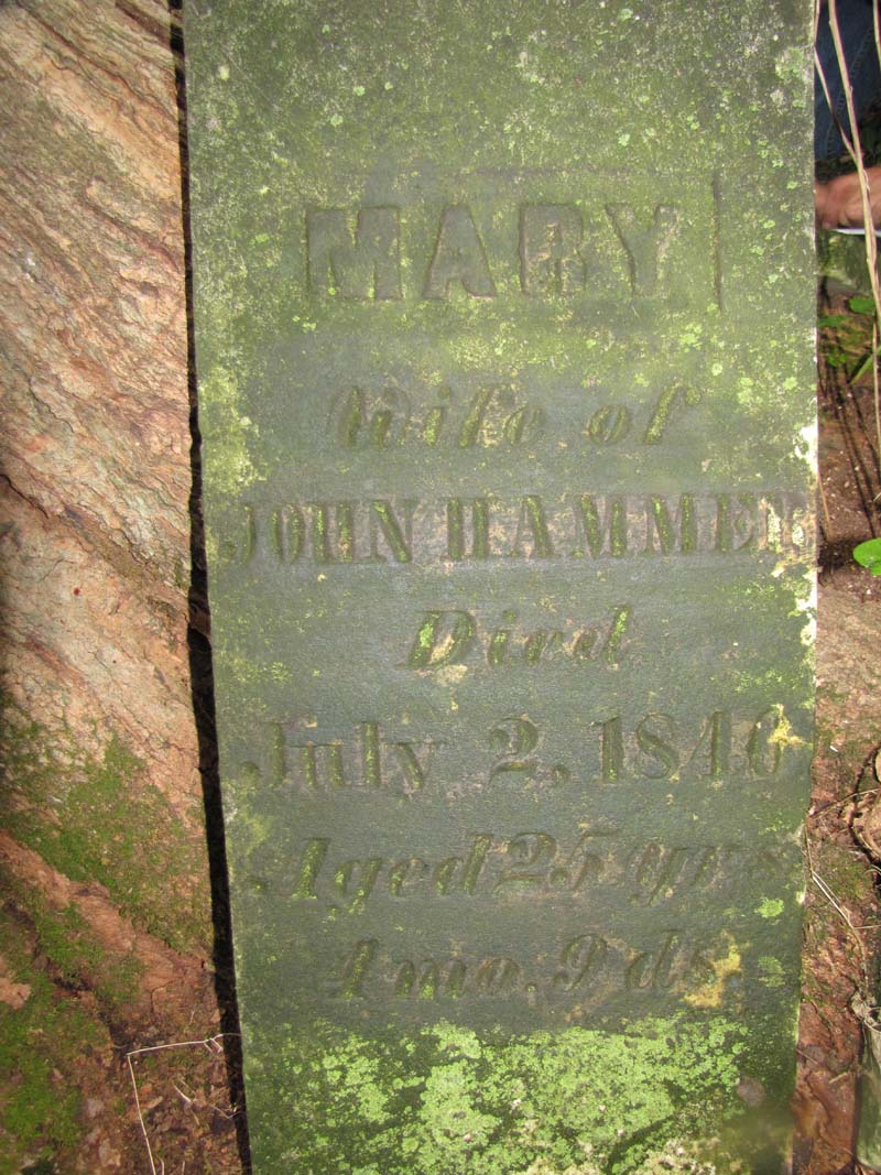 Mary Hammer wife of John Hammer died July 2, 1846 aged 25 years 4 months 2 days |