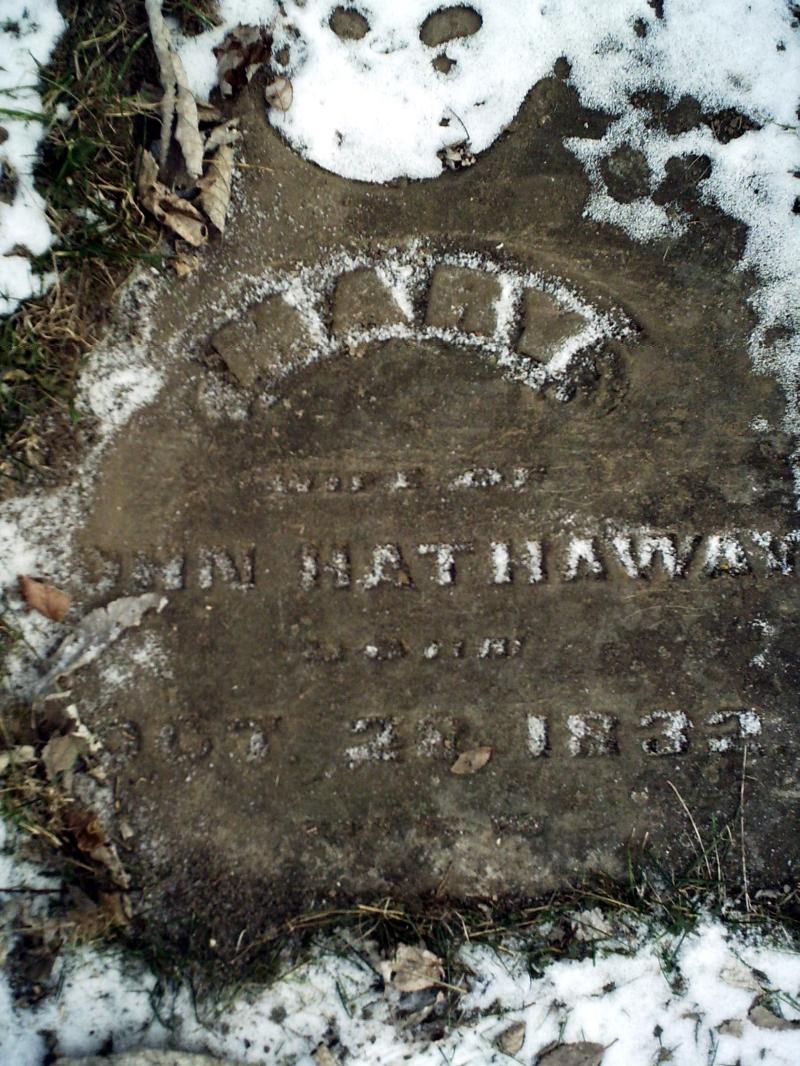 Mary Hathaway [broken & worn stone - dates partly from Warren County Cemetery Records Volume 6 - note dates have also been interpreted as b. 23 Oct 1832 & d. 155 Aug 1858] |