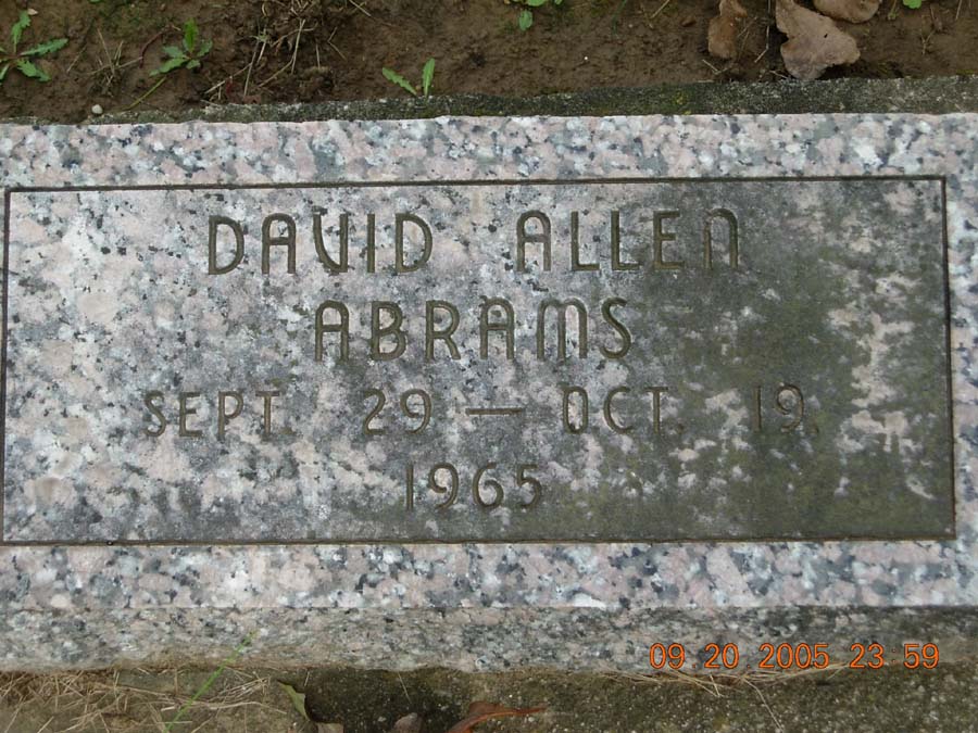 David Allen Abrams Sept. 29, 1965 - Oct. 19, 1965 |