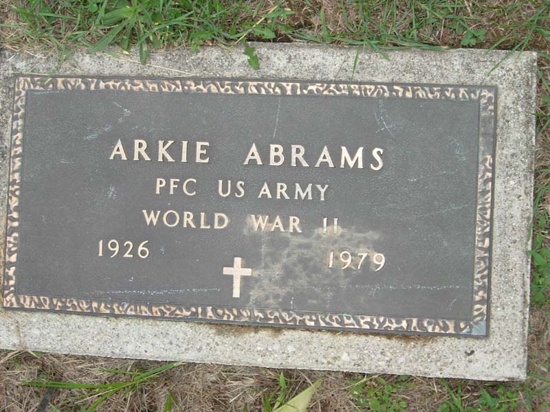 Arkie Abrams PFC US Army World War II 1926 - 1979 |