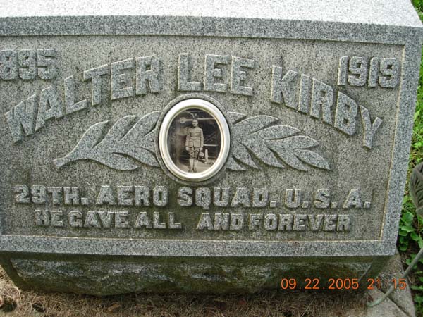 Walter Lee Kirby 1895 - 1919 29th. Aero Squad. U.S.A. He gave all and forever |