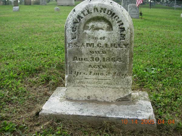 E. C. Vallandigham Lilly son of F. S. & M. C. Lilly died Aug. 30, 1864 aged 2 years 1 month & 1 day |
