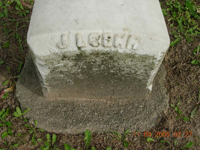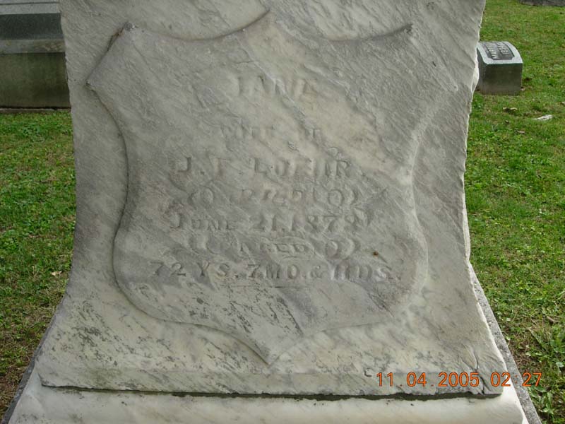 Jane Loehr wife of J. F. Loehr died June 21, 1878 aged 72 years 7 months & 11 days |