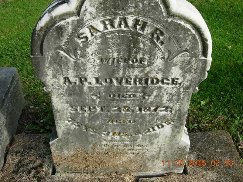 Sarah R. Loveridge wife of A. P. Loveridge died Sept. 28, 1872 aged 75 years 3 months & 21 days |