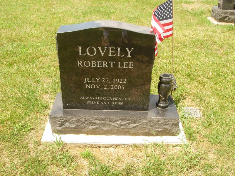 Robert Lee Lovely July 27, 1922 Nov. 2, 2005 Always in our hearts Steve and Robin World War II flagholder |