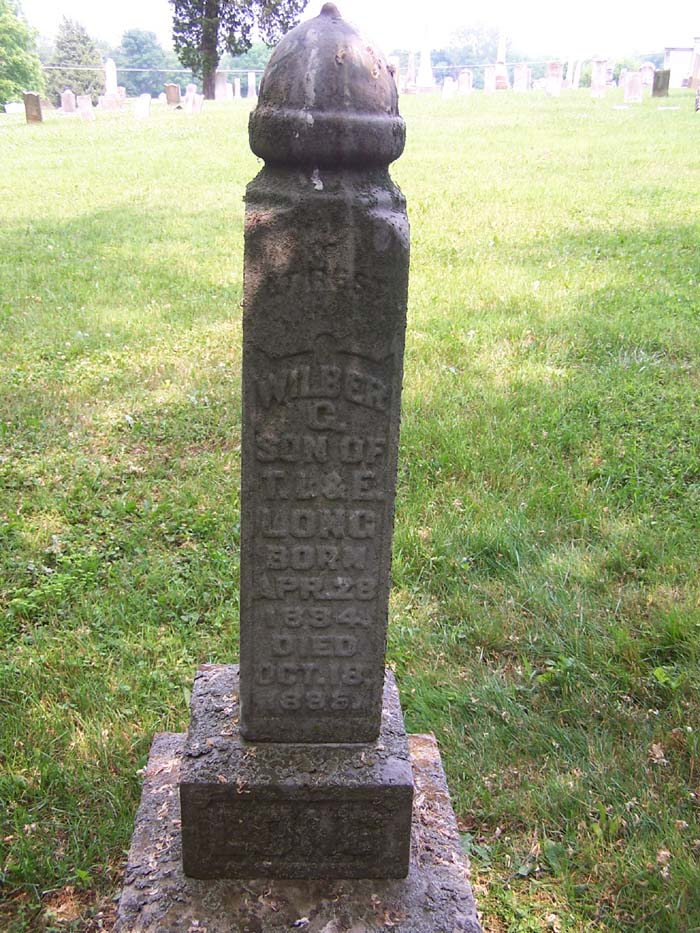 Wilber G. Long son of T. L. & E. Long born Apr. 28, 1884 died Oct. 18, 1895 |