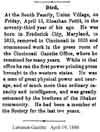 Lebanon Gazette 19 April 1888 [copy from microfilm located at the Warren County Genealogical Society] |