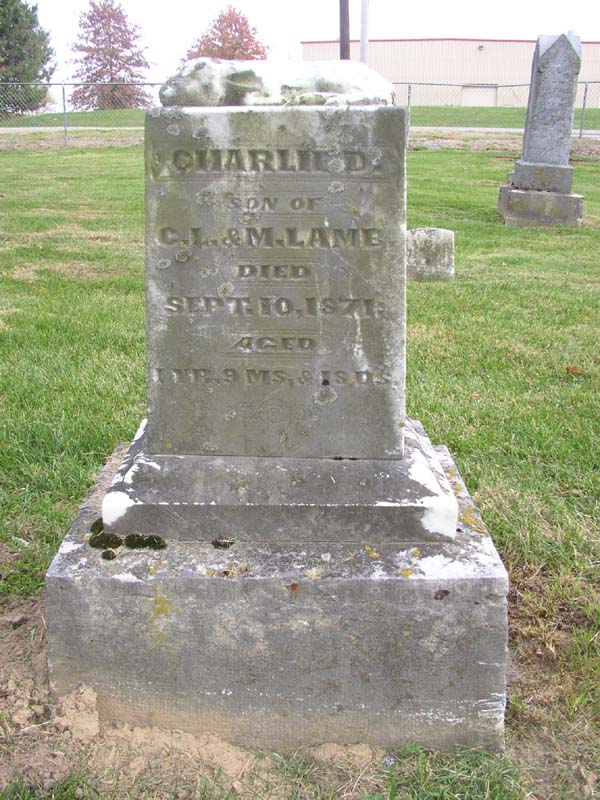 Charlie D. Lamb son of C. L. & M. Lamb died Sept. 10, 1871 aged 1 year 9 months & 18 days |