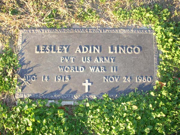 Lesley Adin Lingo Pvt US Army World War II Aug 14 1915 - Nov 24 1980 |