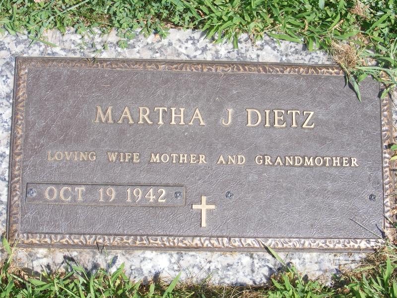 Martha J. Dietz Garden of the Apostles Row 23 |