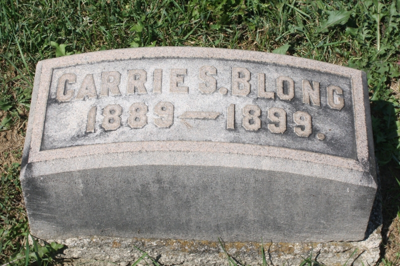 Carrie S. Blong 1889 - 1899 Interment # 765 in lot 70 on 17 May 1899 |