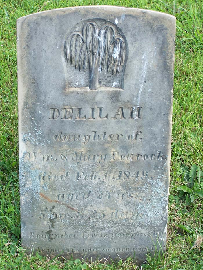 Delilah Peacock daughter of Wm. & Mary Peacock died Feb. 6, 1849 aged 27 years 5 months & 25 days |