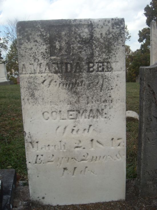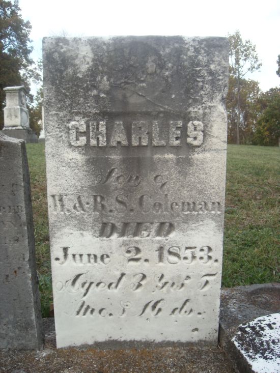Charles Coleman son of W. & R. S. Coleman died June 2, 1853 aged 3 years 5 months & 16 days |